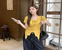 NT$1099復古字母印花,寬鬆顯瘦,夏日氛圍感穿搭,復古字母印花,個性吸睛,街頭感拉滿詳情 - V領褶皺短袖NT$1098