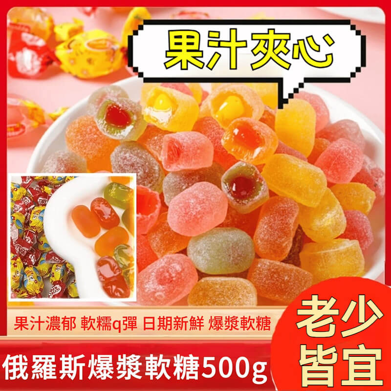 【俄羅斯爆漿果汁軟糖】零添加健康新選擇!混合夾心多種口味,輕輕一抿,絲滑夾心在唇齒間流淌的柔潤甜蜜體驗!