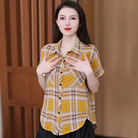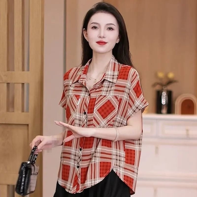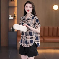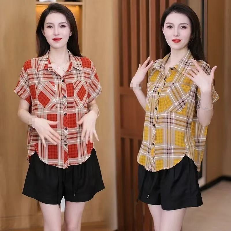【冰絲格子雪紡衫】 夏季降溫神器!冰絲雪紡面料,穿上立減3℃,清爽一整夏