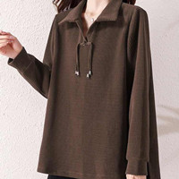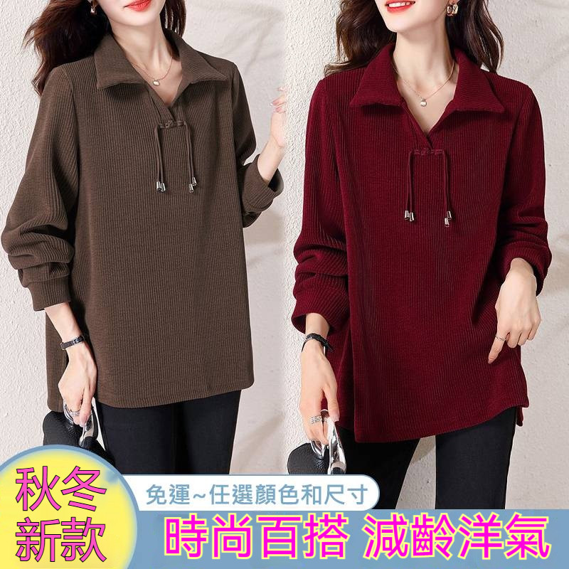 秋冬新款豎坑條長袖,V領修飾脖子顯臉小,寬鬆顯瘦,遮肉遮胯,時尚百搭,單穿內搭都合適