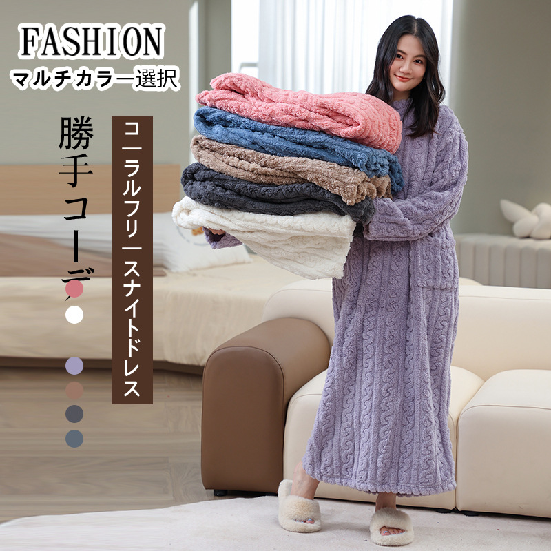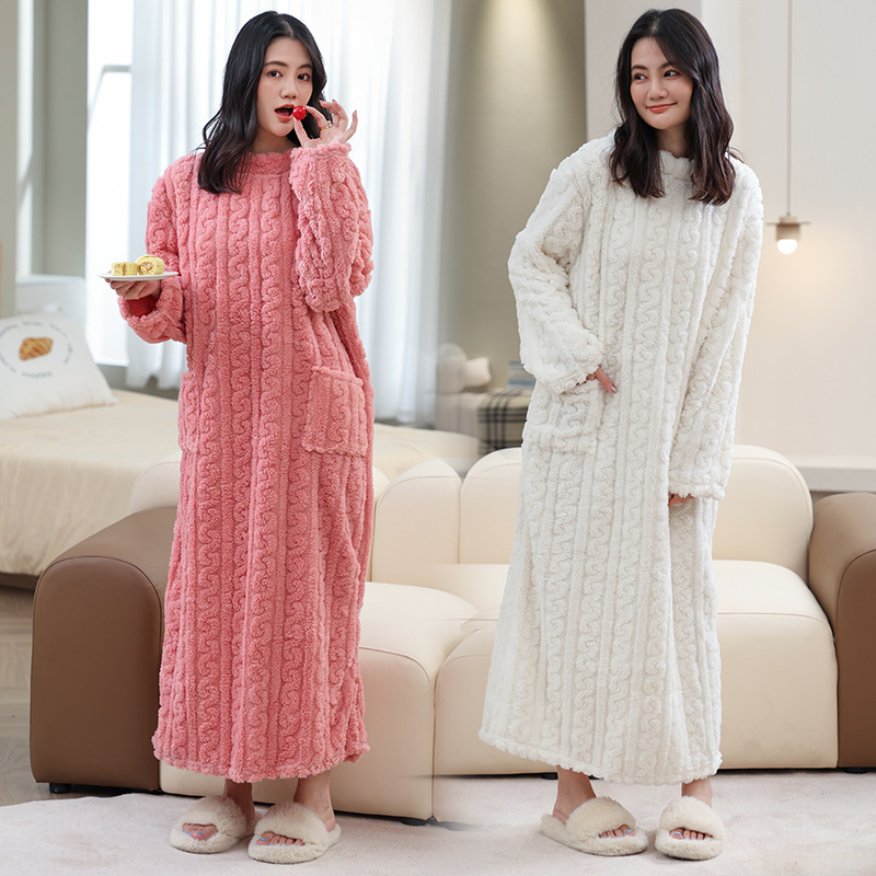 冬天必備珊瑚絨長睡裙 加厚珊瑚絨,吸水超快乾 長版設計 保暖不灌風 親膚材質 像雲朵般柔軟