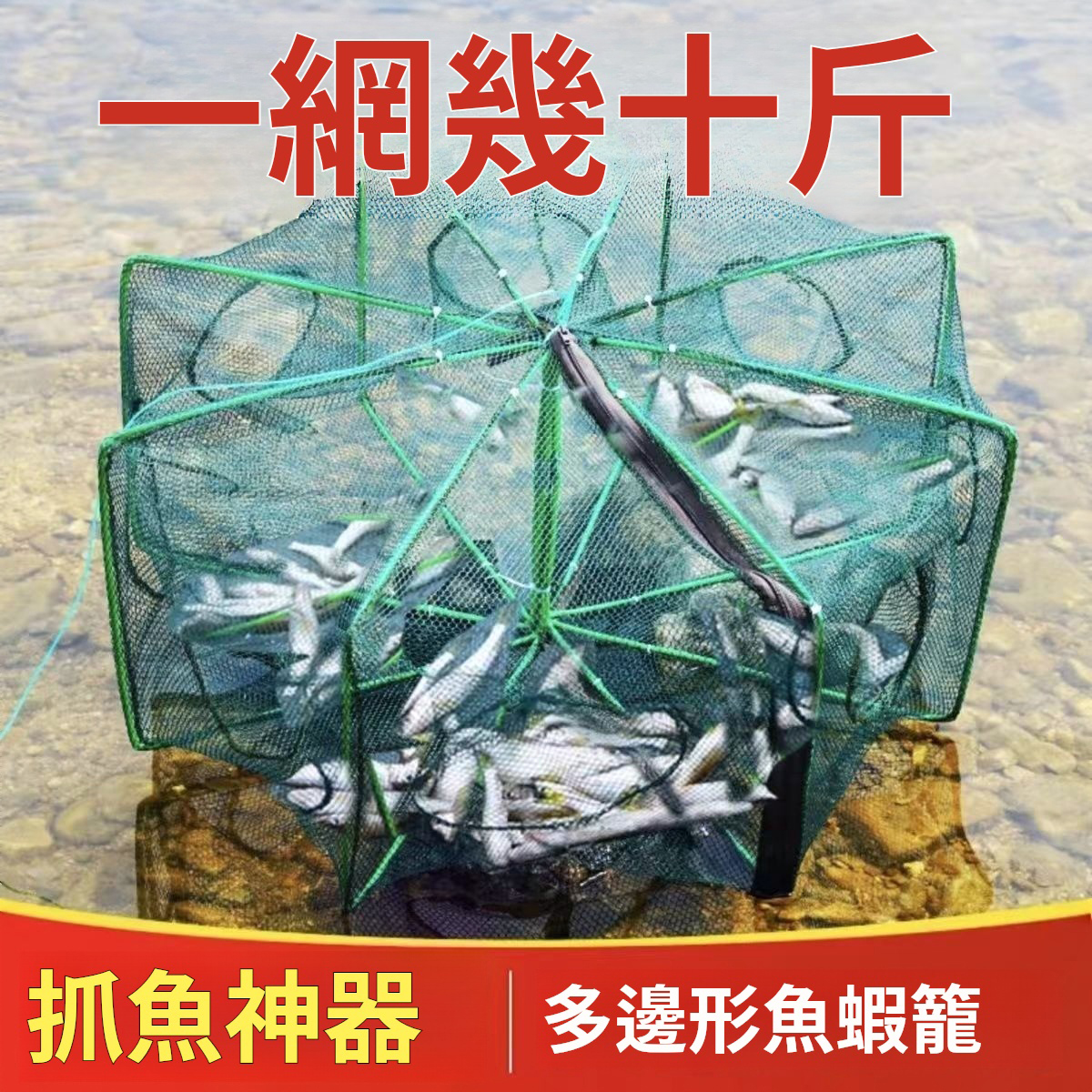 抓魚神器,一網輕鬆撈十斤,折疊收納不占空間,丟進溪邊、池塘就能等收穫;耐用網布、彈力支架,蝦魚通吃,休閒釣魚、野趣捕撈都適用
