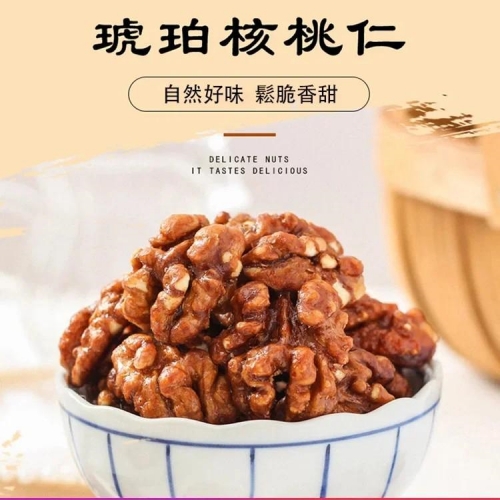 琥珀核桃仁 琥珀色澤 香甜酥脆 優選山核桃慢火熬製 傳統手藝鎖住營養與焦香 每一口都是時光饋贈